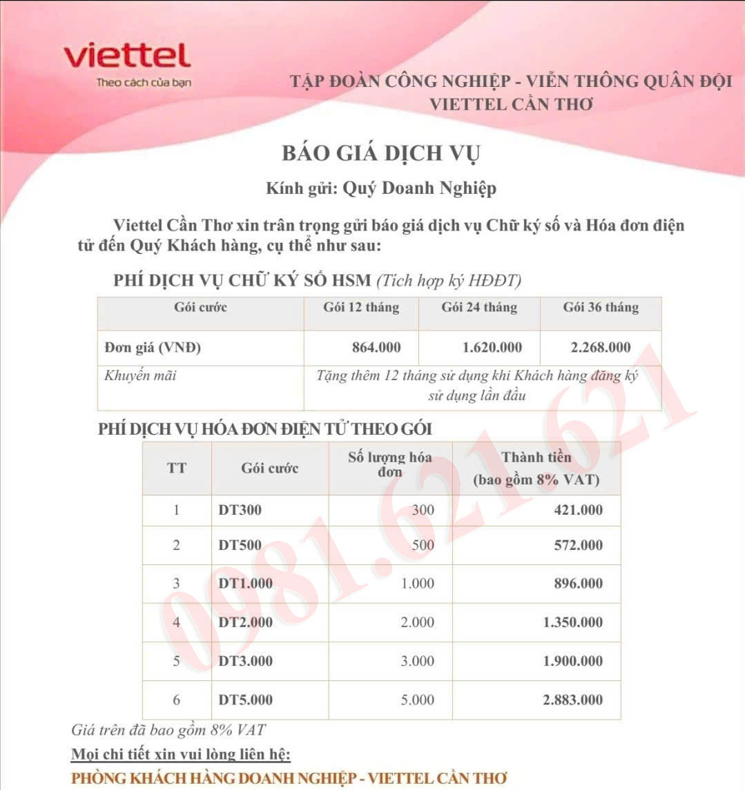 liên hệ mua chữ ký số viettel cần thơ,
