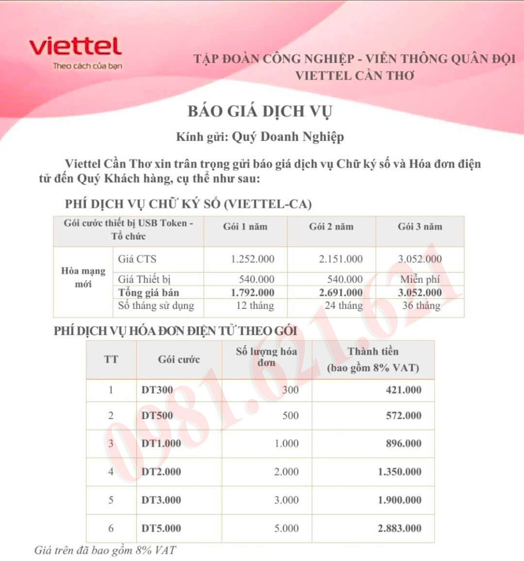 chữ ký số viettel cần thơ giá rẻ,