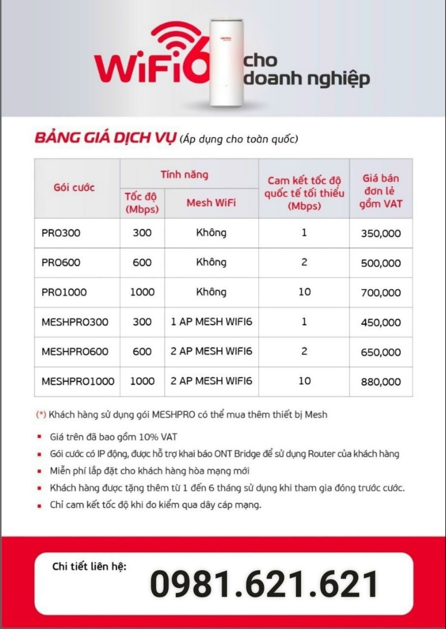 Pro300 Wifi6 Viettel Cần Thơ - 350.000 VNĐ/Tháng