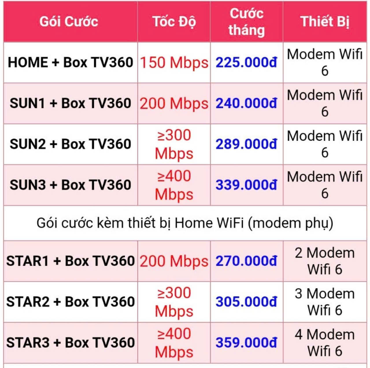 ✔ Gói SUN2 300Mb – 229.000đ/tháng